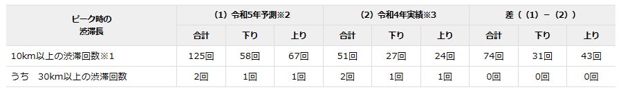 令和4年(昨年)の渋滞回数との比較は以下のとおりです。なお、令和4年実績には、事故などの影響による渋滞が含まれています。