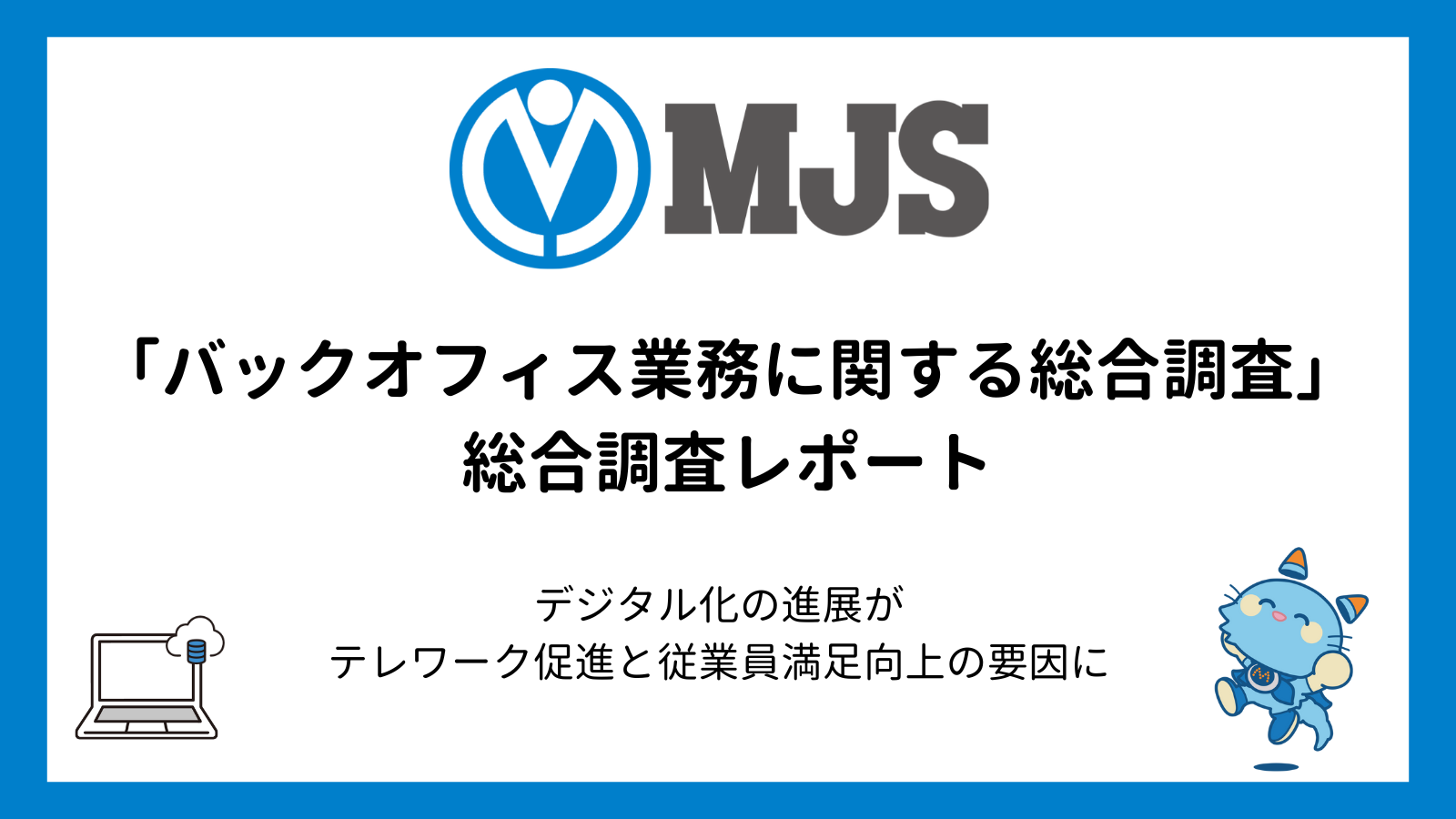 財務・会計システムおよび経営情報サービスを開発・販売する株式会社ミロク情報サービス(本社:東京都新宿区、代表取締役社長:是枝 周樹、以下「MJS」)は、財務・経理・人事・総務・労務などバックオフィス業務に関わる445名を対象に、テレワークやデジタル(IT/AIなど)活用と業務効率化の状況ならびに業務量や業務内容の変化などに関する「バックオフィス業務に関する総合調査」を実施し、総合調査レポートを公開しました。