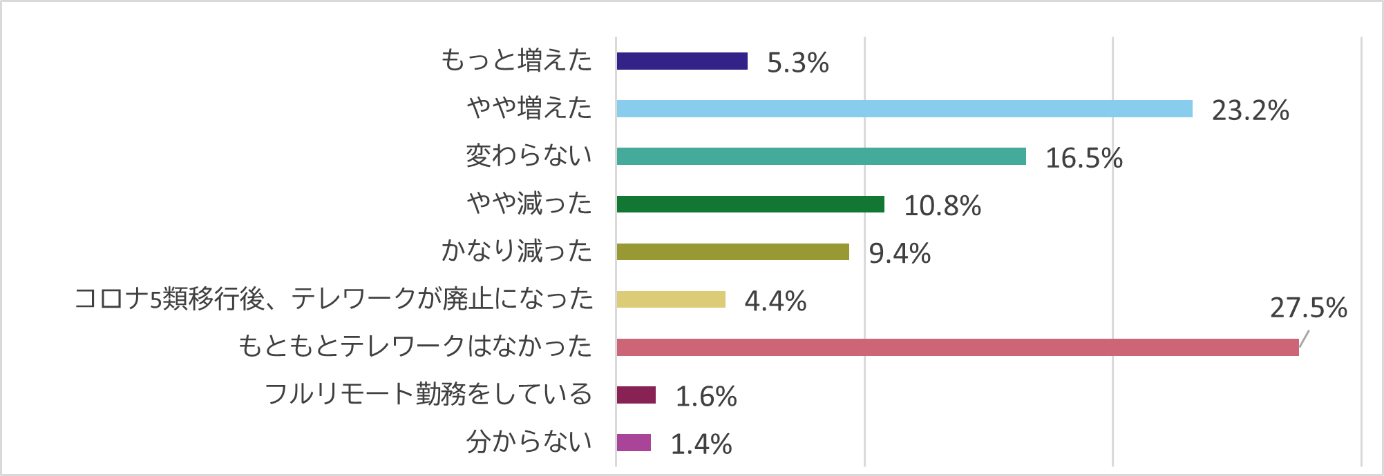 【質問】あなたの会社では、コロナ5類移行前(~2023年5月)と比べて、テレワークの比率に変化はありましたか。