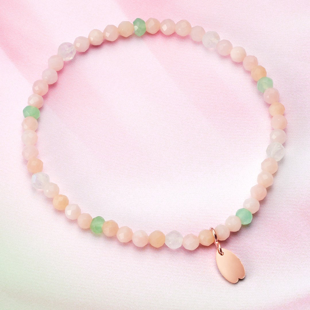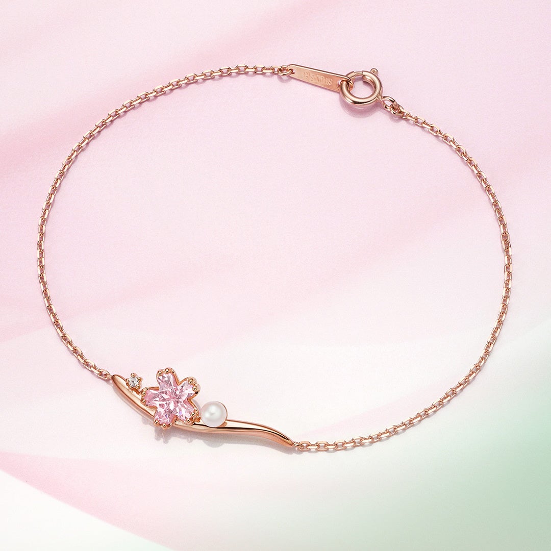 あたたかな陽ざしが降り注ぐ春の幻想的な情景を表現した、今年の桜コレクションらしいEC限定のブレスレットも登場。オパール、フェルスパー、クリソプレーズの天然石に、桜の花びらモチーフのプレートが揺れる愛らしいデザインです。