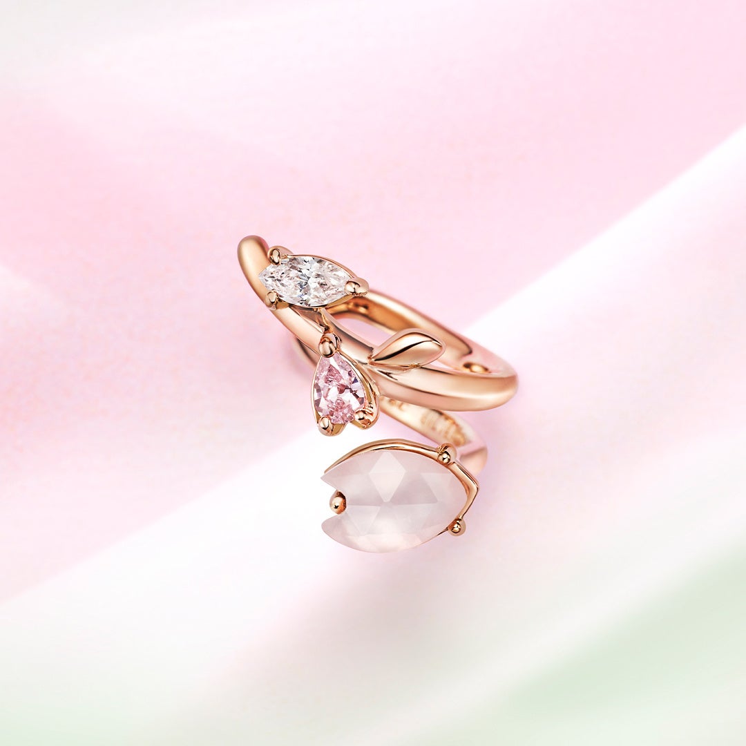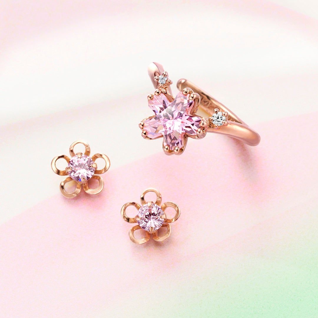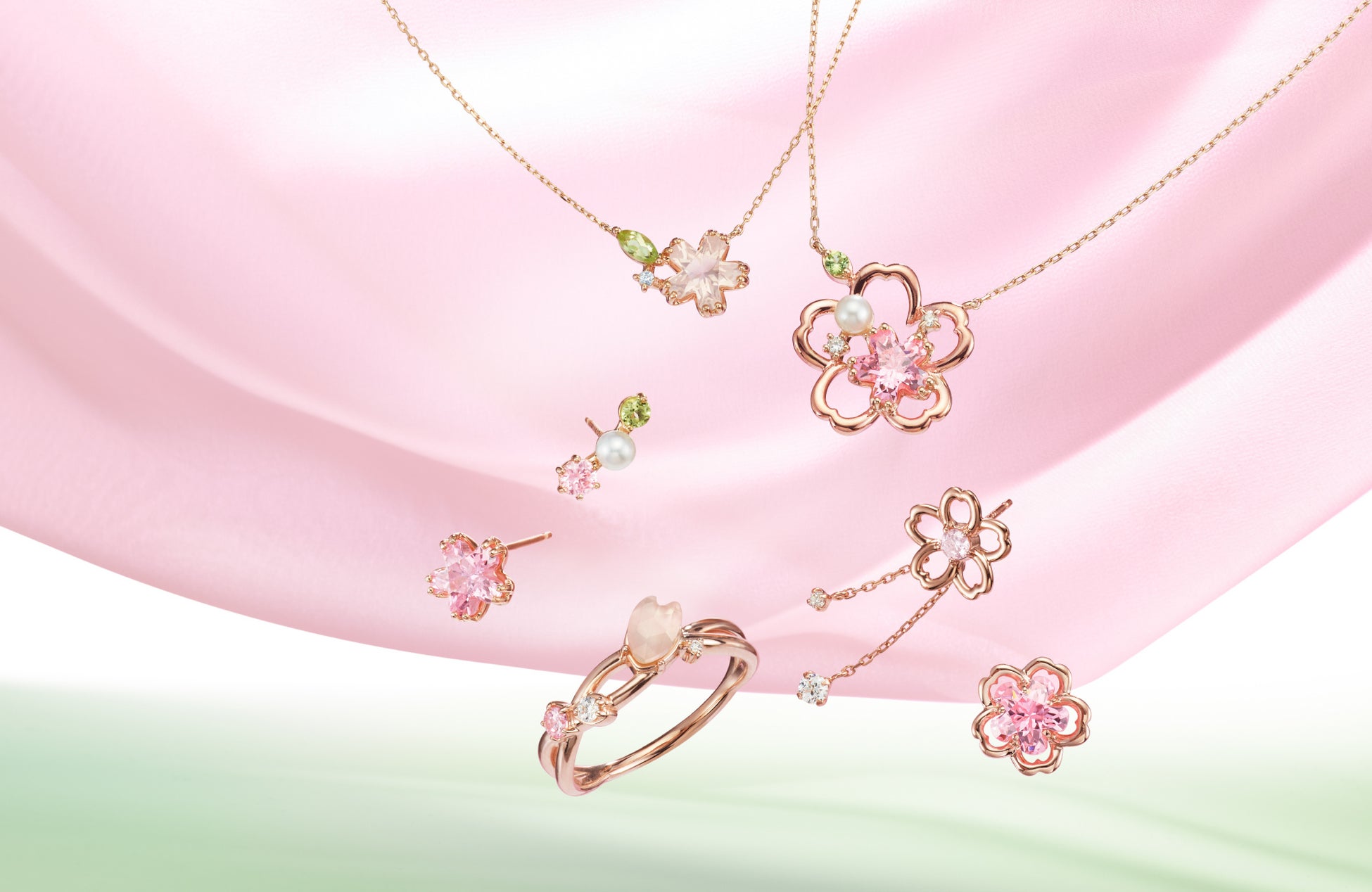 光を浴びて咲き誇る桜の花びらの美しさと愛らしさを、オリジナルカットのローズクォーツやキュービックジルコニアで表現したシリーズや、風に揺れる桜の花やつぼみを表現したセットアイテムや1点でも華やかなイヤーアイテム、重なる花びらや3色団子などお花見の風景を表現したK10を使用したジュエリーなど、春に向けて気分を上げてくれるジュエリーを豊富にラインナップしました。
