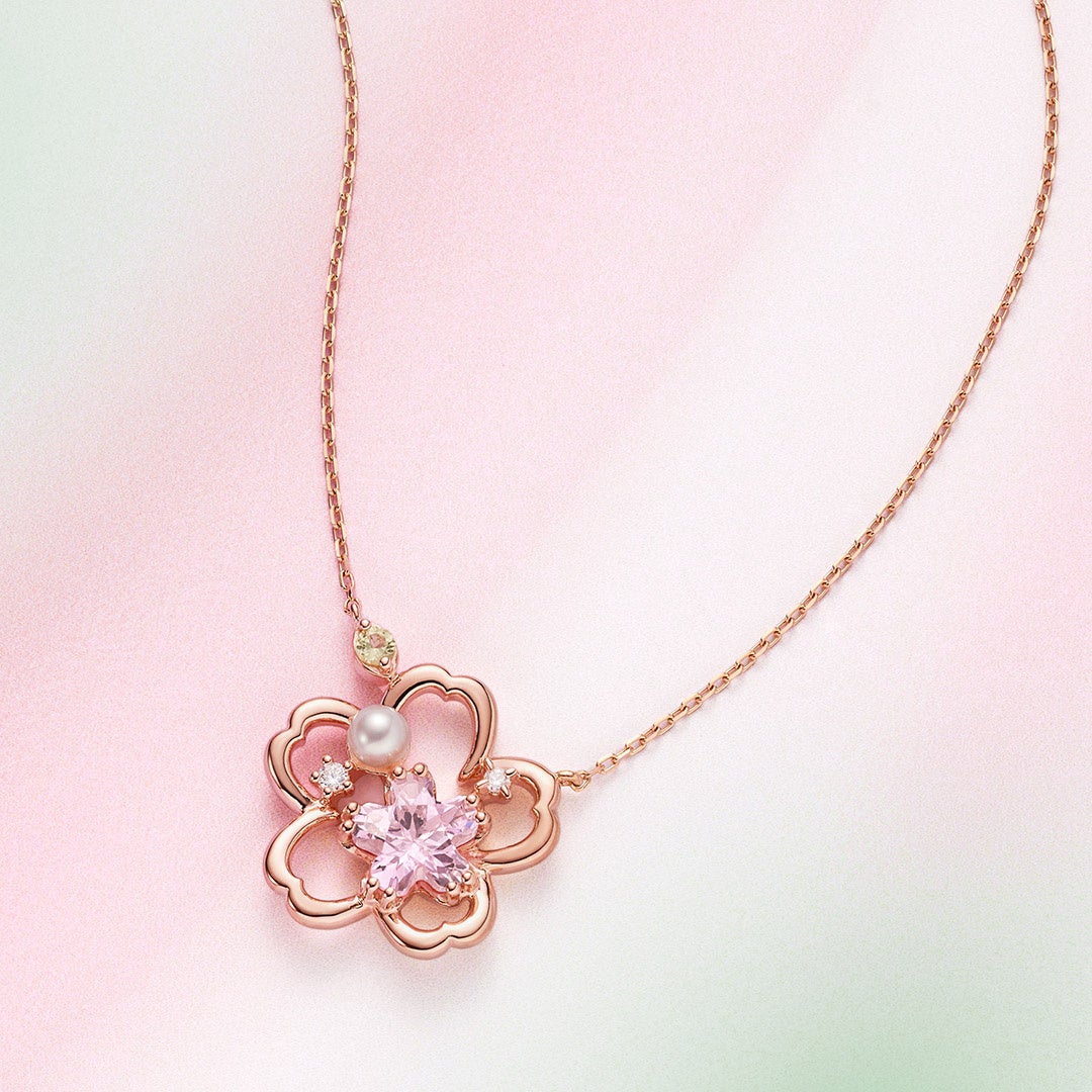 コレクションのメインアイテムとして、春風に揺れる満開の桜の花と花びらをイメージしたネックレスセットが登場。