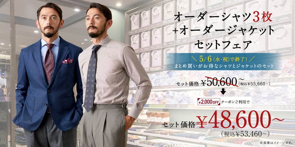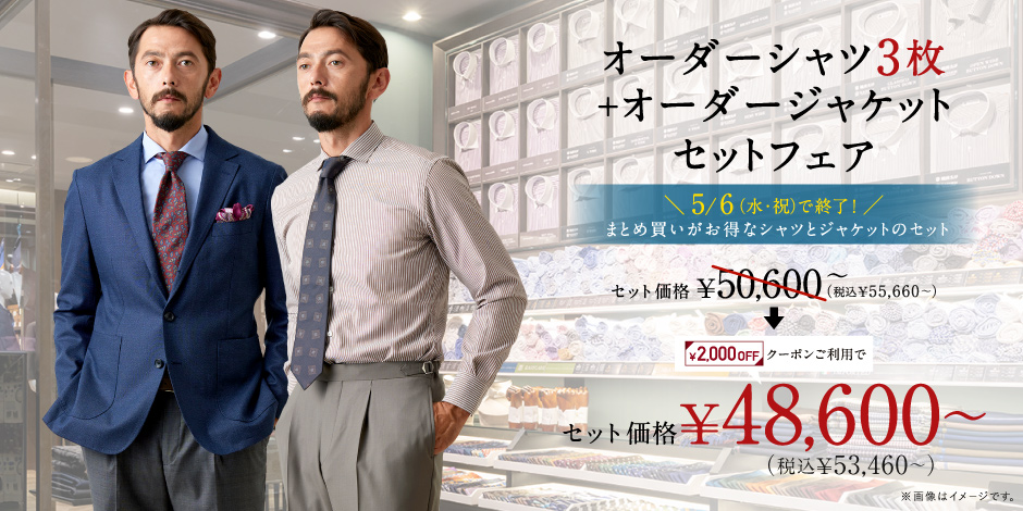 【全店対象】お得な早割クーポン付でジャケット1着とシャツ3枚がセットでお得!