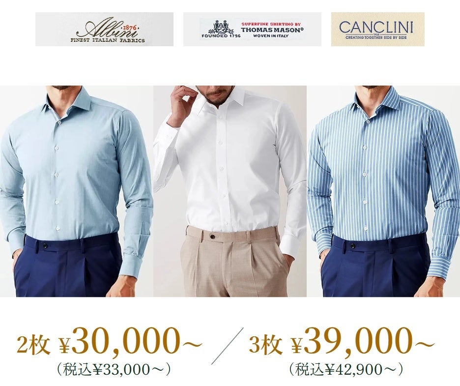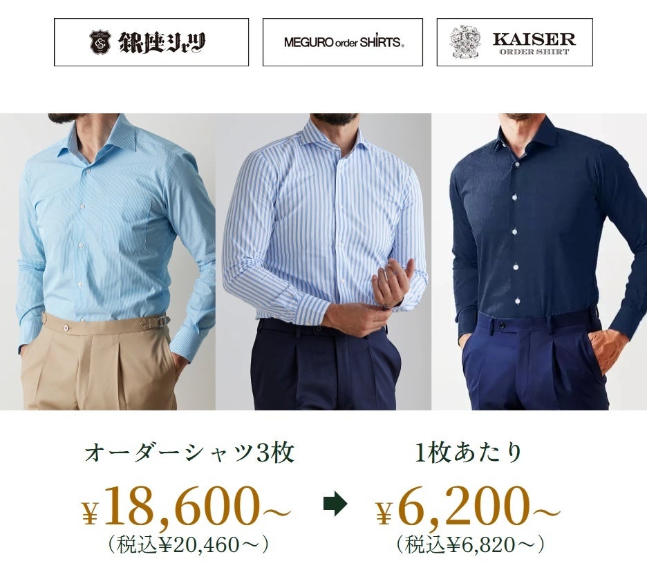 オーダーシャツ3枚価格:18,600円~(税込20,460円~)