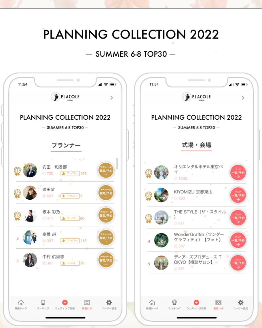 - PLACOLEWEDDING「プランナーランキングプラコレアワード2022 SUMMER」受賞者発表