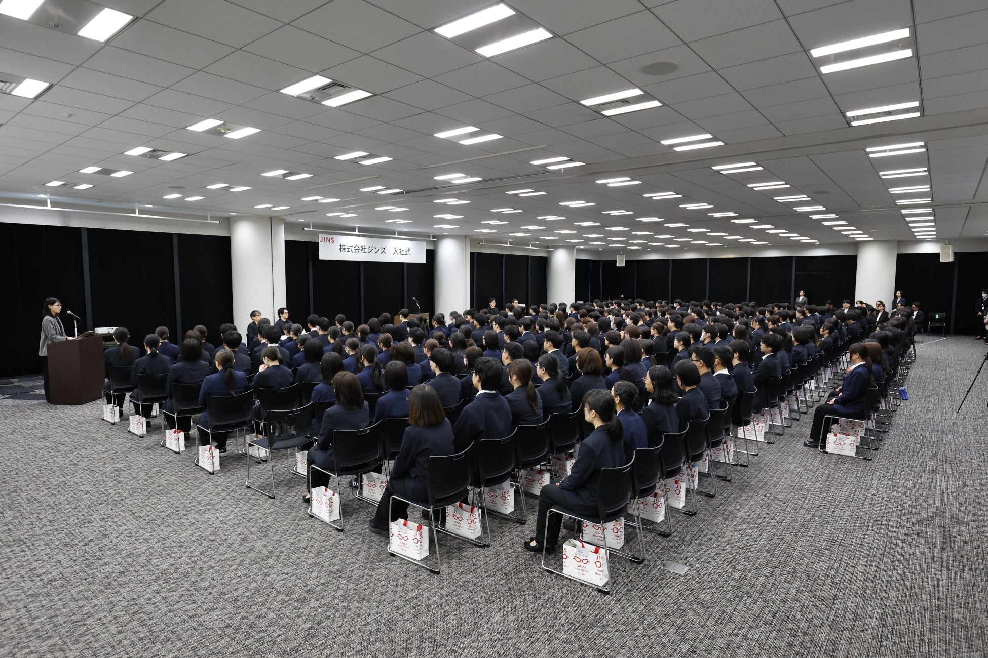 株式会社ジンズ(以下JINS)は、2026年4月1日(水)にベルサール神田にて2026年度新卒入社式を開催し、多様なバックグラウンドを持つ238名が「グローバル社員」として同日入社しました。