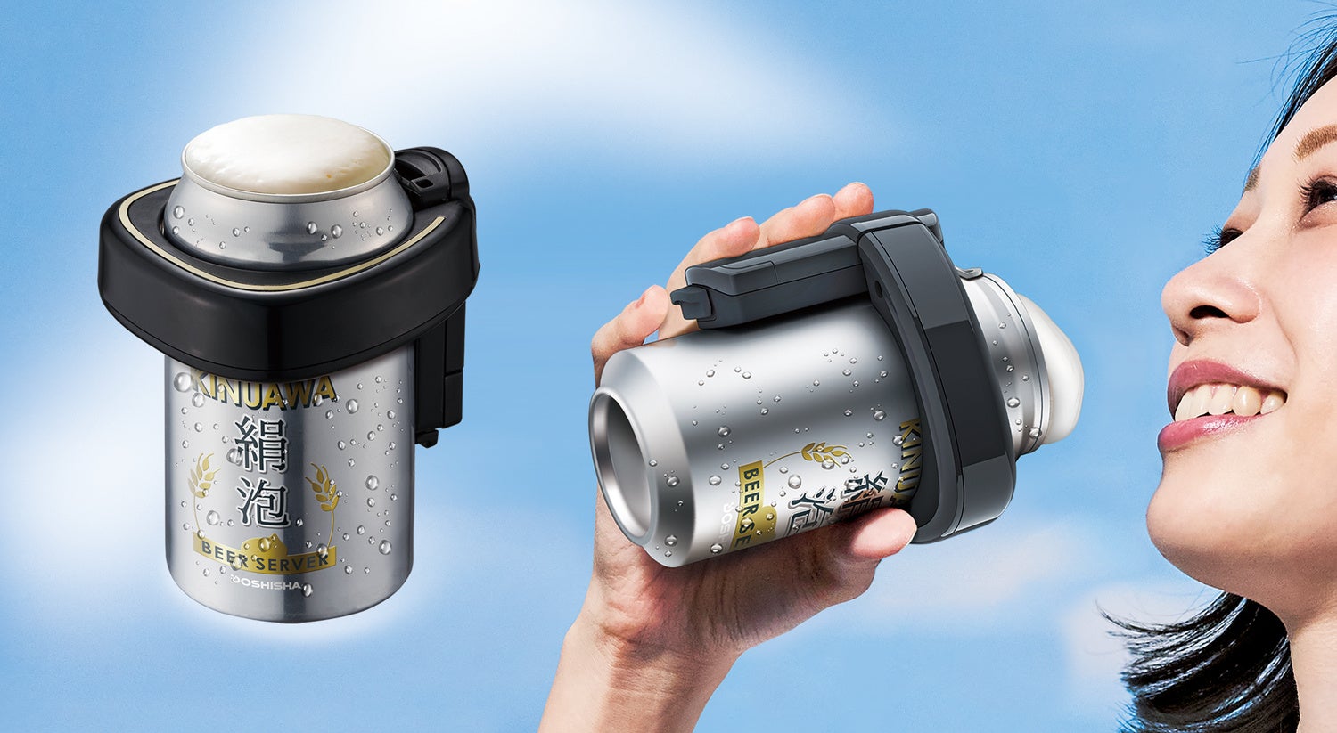 2018年より販売を開始した、「絹泡」シリーズは、缶ビールに取り付けてきめ細かい泡を発生させる小型ビールサーバーのシリーズ名です。ビールの泡が絹のようなきめ細かい泡になることから、「絹泡」と名付けました。