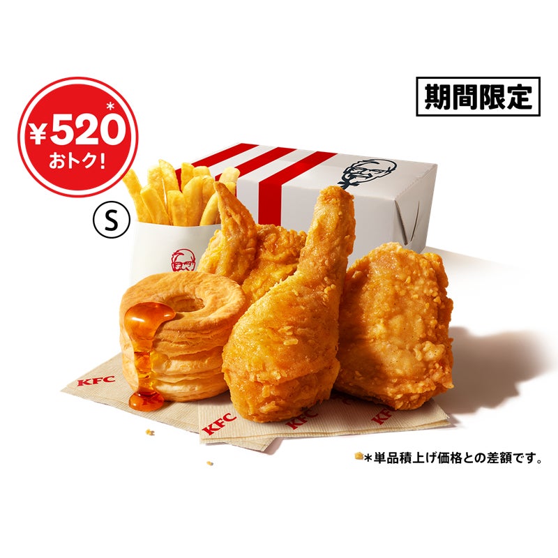 「ファン感謝祭パック」は、KFC自慢の商品、「オリジナルチキン」3ピースと「ポテト(S)」、「ビスケット」が入って520円※2もおトクなパックです。「オリジナルチキン」は、創業者カーネル・サンダースから受け継いだ調理法により、今もなお変わらぬ味わいをお楽しみいただけるKFC唯一無二の逸品です。「オリジナルチキン」との相性を考えて味付けした「ポテト」、カーネル秘伝のオリジナルレシピをもとに、より味わい深くアレンジされた「ビスケット」は、表面サクサク中はしっとりとした生地に、特製ハニーメイプルをかけてお召し上がりいただくKFCオリジナルの人気商品です。