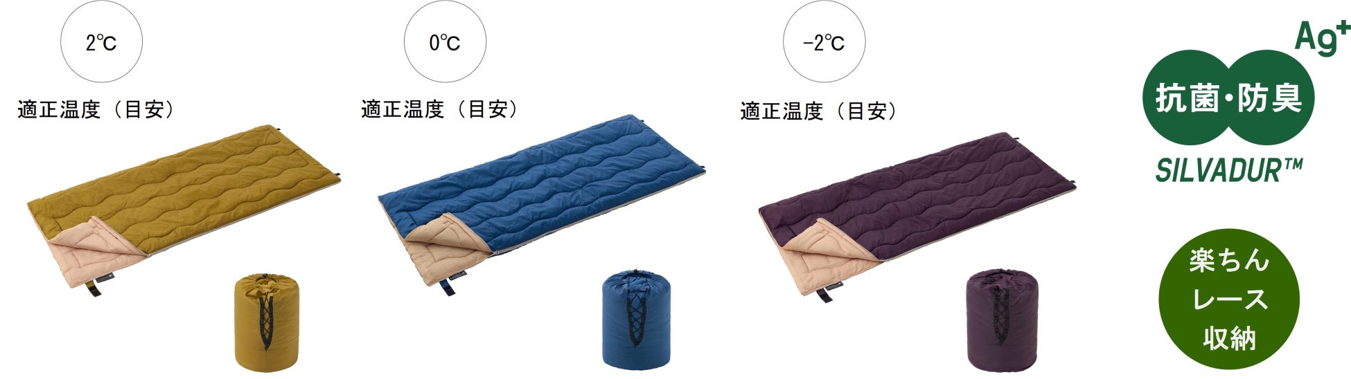 - 「抗菌防臭 丸洗いドミールシュラフ」シリーズ3種