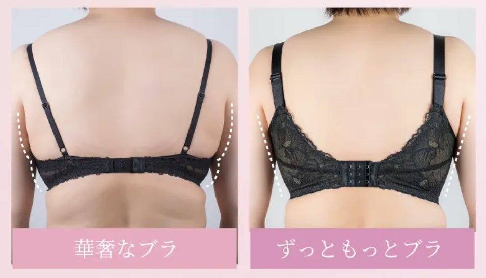 「ずっともっとブラ」は「今まで着けていたブラが苦しく感じて着け続けられなくなった」「ラクな着け心地でシルエットを整えてくれるブラほしい!」というスタッフやお客様からのお声を元に開発しました。