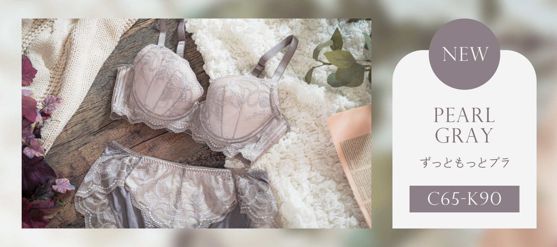 5月の販売開始以降、「ずっともっとブラ」は着け心地の良さに多くの喜びの声をいただき、カラー展開のご要望も多数寄せられました。そんなお声にお応えした第2色は、肌になじみやすく定番としても活躍するパールグレー。レースもアップデートし、シックな印象にさりげない華やかさをプラス。冬のファッションにも合わせやすく、毎日を上品に彩ります。