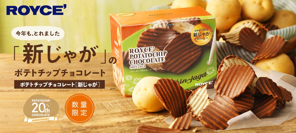 ポテトチップの塩味とチョコレートの甘さの絶妙なバランスが人気のポテトチップチョコレート。ロイズの工場がある北海道当別町で今年収穫した「新じゃが」を使用した毎秋限定の味わいが今年も登場しました。北海道の秋の味覚をぜひお楽しみください。
