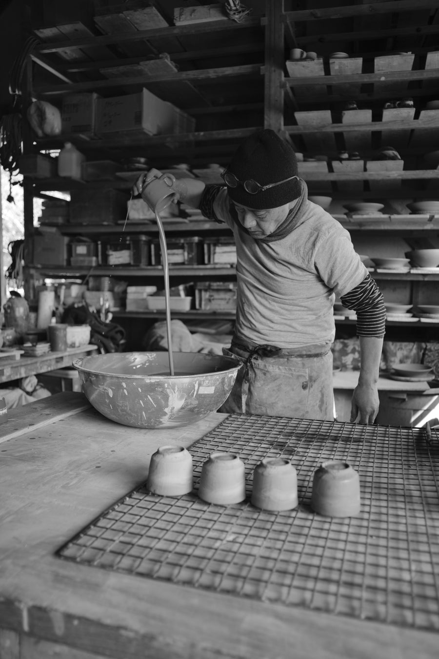 1958年愛媛県生まれ。鯉江良二氏の弟子を経て常滑にて独立。1984年よりタイ・ラオス・インドなどアジアの国々を旅する。1998年高知に移住。棚田が美しい高知の山あいに住み、めし碗、皿、鉢、湯のみ、日々の暮らしのなかで使われる土のうつわをつくる。薪窯で焼成する力強い作品は、使われて美しく育つ「うつわ」の原点を忘れないやきものであると同時に、現代に生きる人々に問いかける強烈なメッセージでもある。2010年現代美術家の村上隆氏のカイカイキキギャラリーにて個展開催、以後、国内外、特に中国、台湾では熱狂的な支持を集める。2022年CIBONE Brooklynのオープニング個展開催。コロナ禍においても力強い存在を示している。