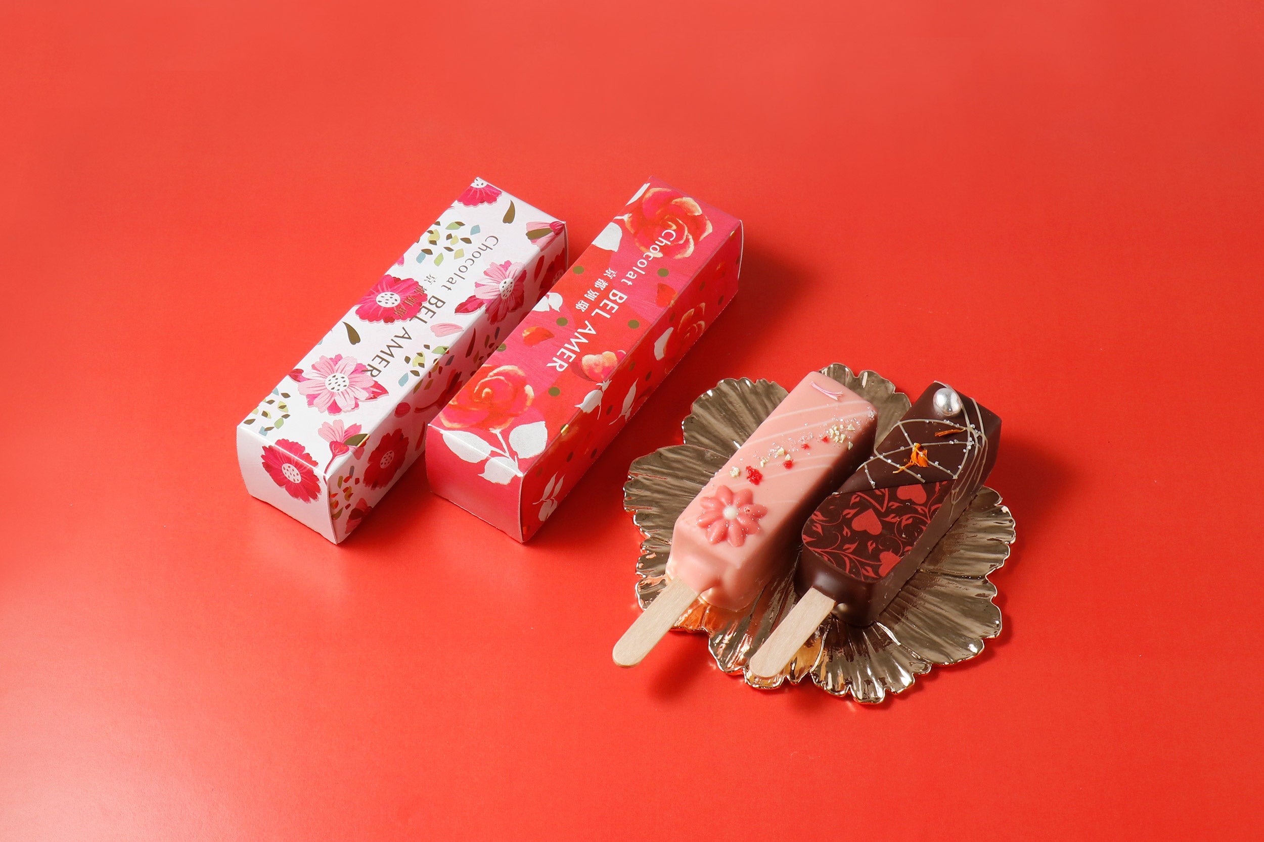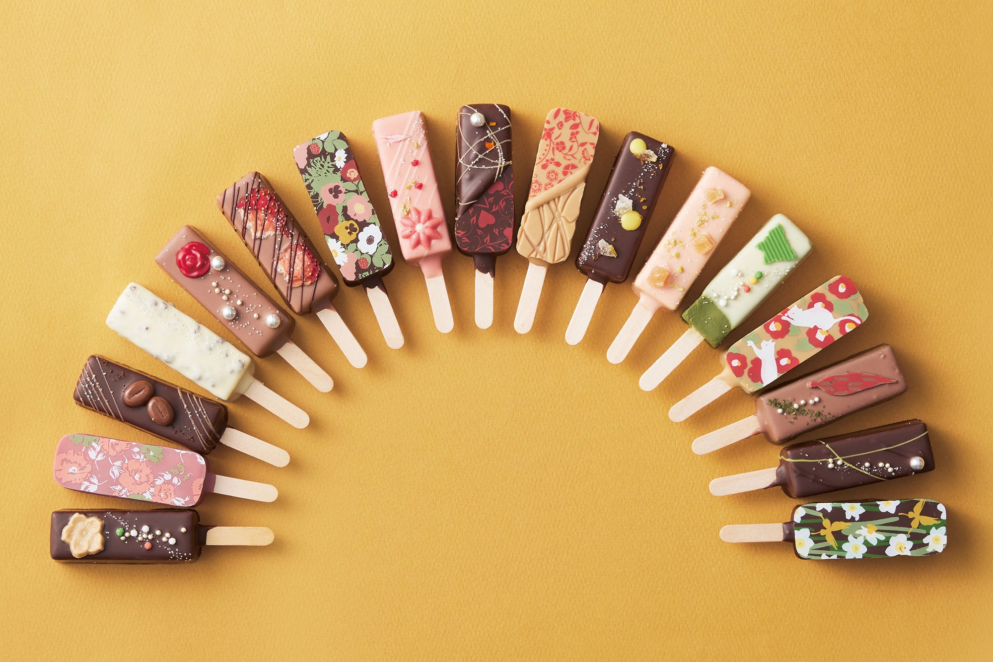 様々な素材を使用し、口どけ良く軽い食感に仕上げた、棒つきチョコレート。