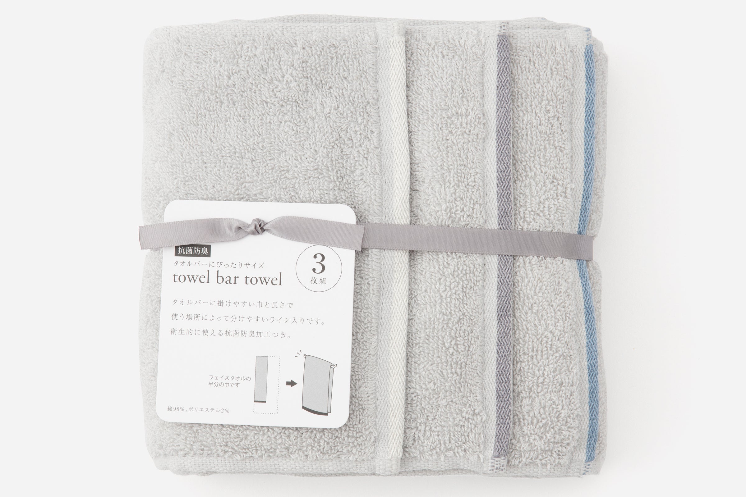 「タオルバーに折らずに掛けることができ、今までありそうでなかったサイズが洗面・トイレにピッタリです。洗濯の際もピンチハンガー1個分で干すことができ、早く乾くところも良いです。色味も、場所を選ばず合わせやすいく使いやすいです。3枚990円と、とてもお求め易い価格もオススメポイントです。」