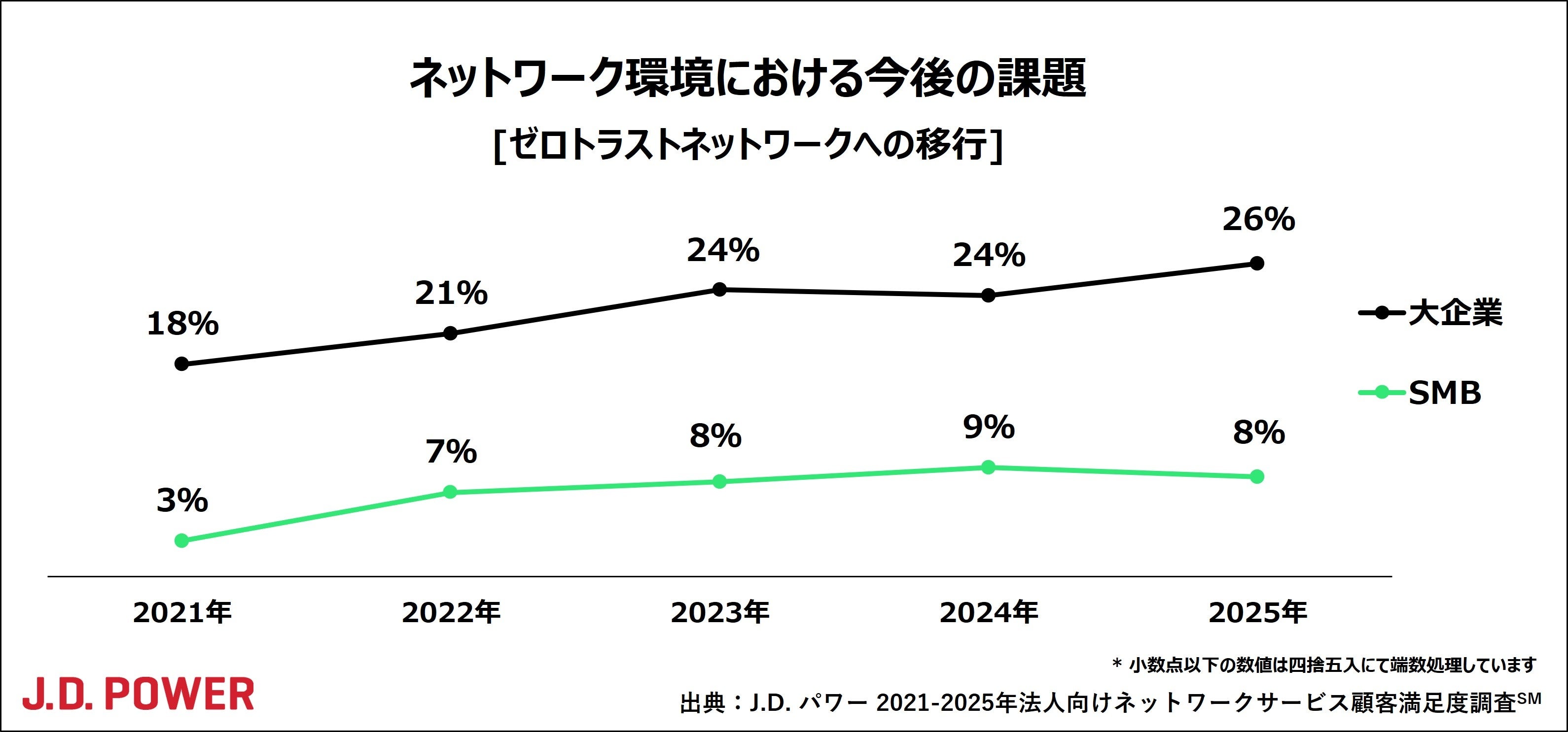 大企業中心に高まる「ゼロトラストネットワーク」への関心【J.D. パワー 2025年法人向けネットワークサービス顧客満足度調査℠】