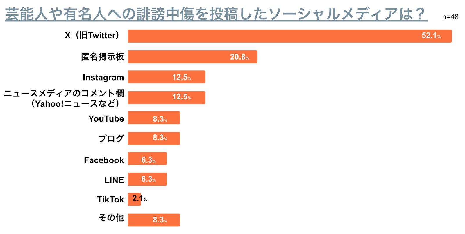 ■ 芸能人や有名人への誹謗中傷、半数超が「X」利用