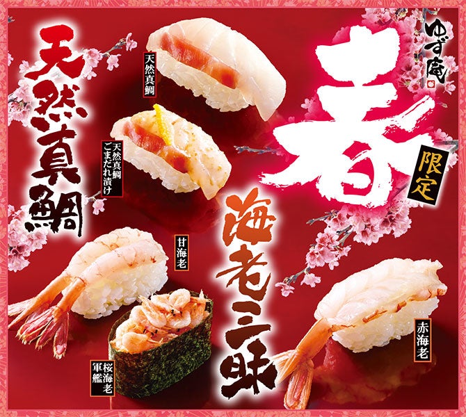 【ゆず庵】プリプリ海老三昧と天然真鯛のお寿司が食べ放題!春期間限定メニュー販売開始