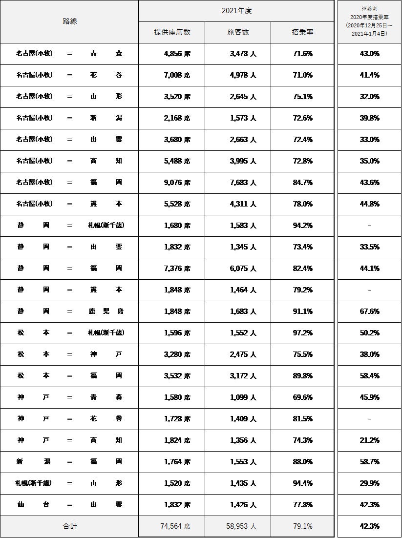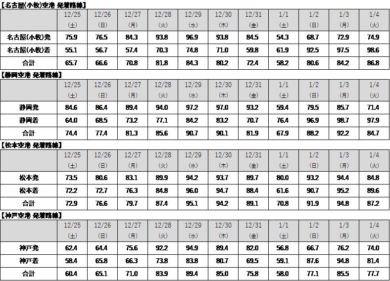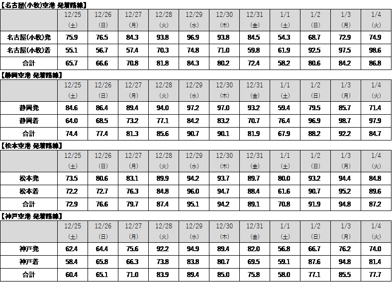 ■路線別の搭乗実績[2021年12月25日(土)~2022年1月4日 (火)]