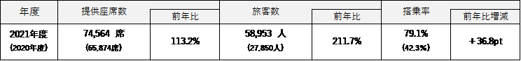 ・旅客数、搭乗率については、前年(2020 年度)と比較して大幅に増加しております。