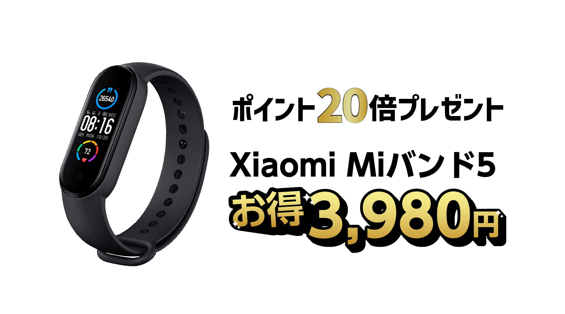 - Xiaomi Miバンド5 3,980円(税込) ポイント20倍プレゼント