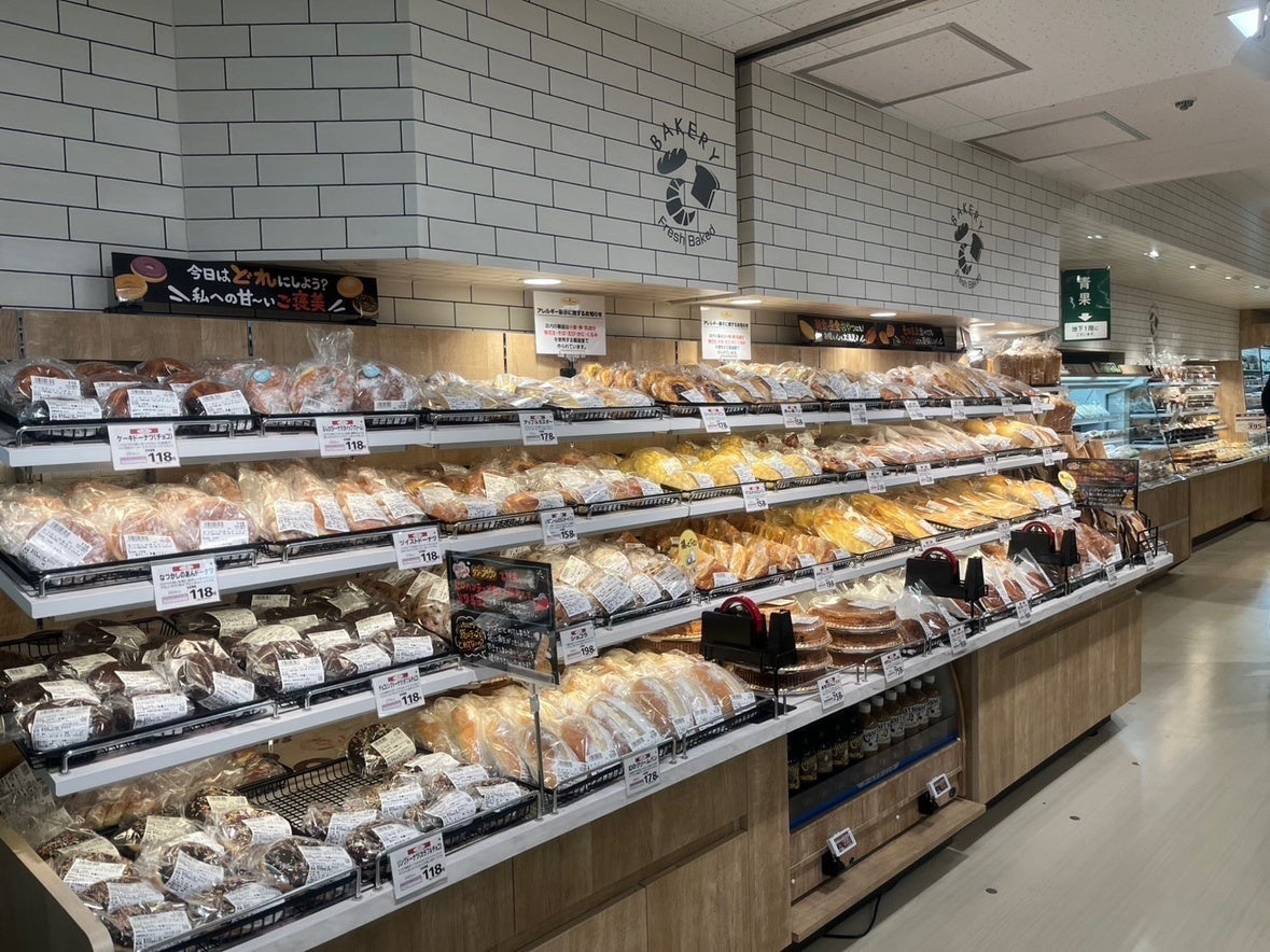 インストアベーカリー「ダン・ブラウン」を新設しました。各種パンや窯焼きピザ、サンドイッチやフルーツタルトなど全てを店内で手作りしています。地下1階から移設した総菜売場では、お弁当やお寿司、店内で焼き上げた焼魚・煮魚やお肉総菜、温総菜や冷総菜などを種類豊富に販売しています。同フロアには、菓子や飲料・お酒などもあり、昼食やおつまみなど、すぐに食べたいものを短時間でお買い物しやすい売場になりました。