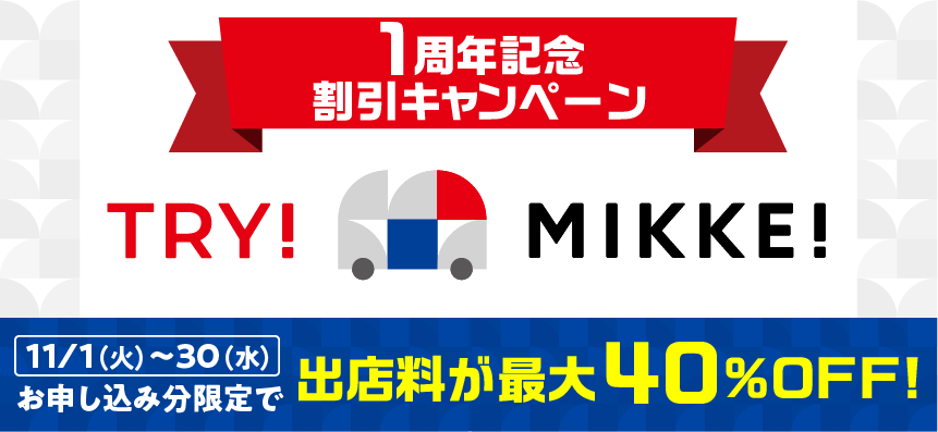 「1周年記念 割引キャンペーン TRY! MIKKE!」