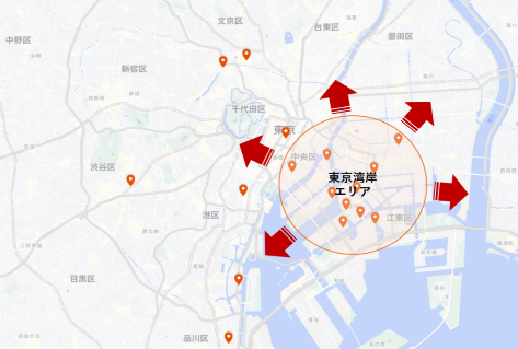 これまで東京・湾岸エリアを中心とした展開でしたが、直近は日比谷・京橋・日本橋から渋谷・飯田橋・阿佐ヶ谷など都内の主要エリアにも出店実績を増やしてまいりました。また、出店物件も従来のマンション・商業施設・オフィスなどから、駅前高架下・スーパーマーケット・観光地・介護付有料老人ホームなど様々なバリエーションへ拡張しています。