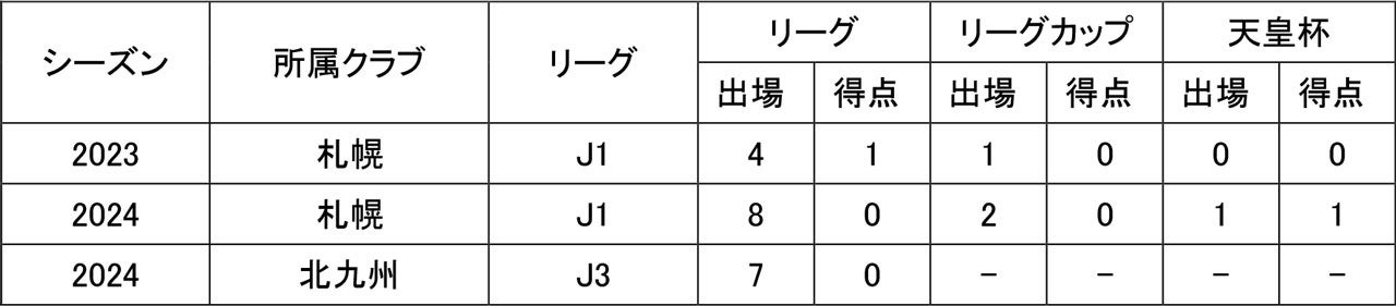 カップ戦 通算3試合出場0得点
