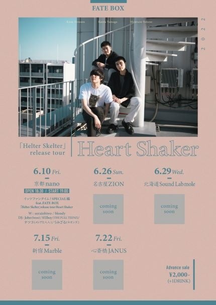 現体制初となるEP「Helter Skelter」を6/8に発売予定の大阪のバンド、FATE BOXが、EP「Helter Skelter」の詳細やリリースツアー「Heart Shaker」の開催決定を解禁した。