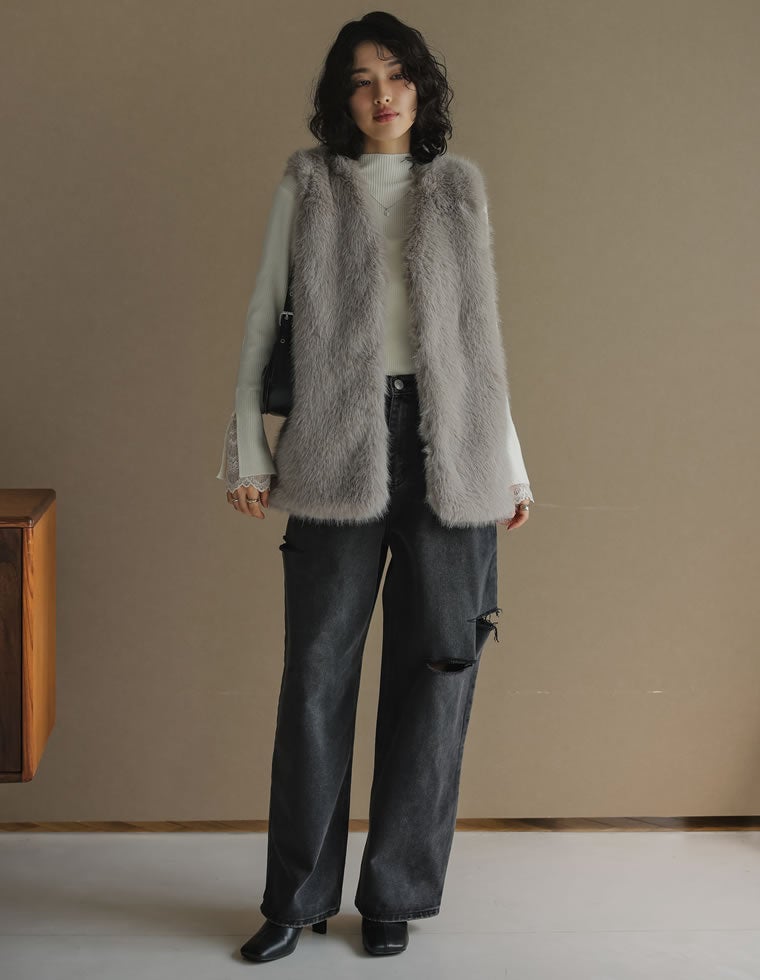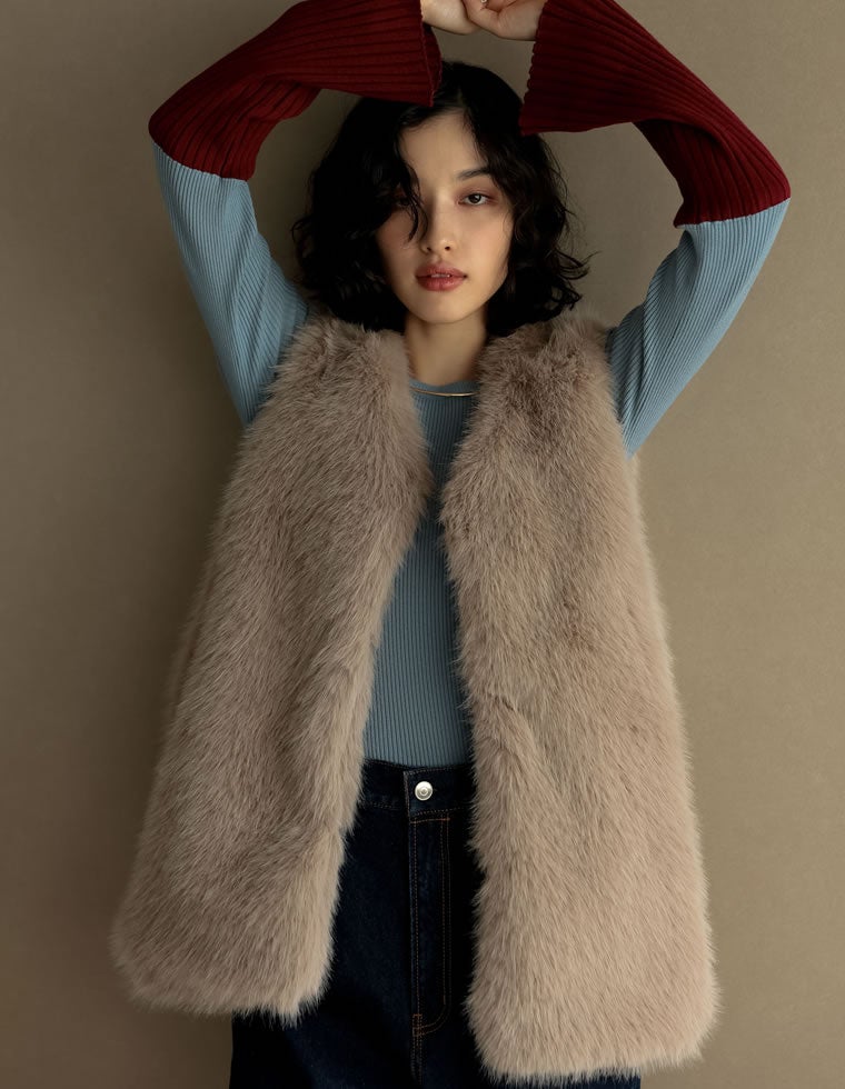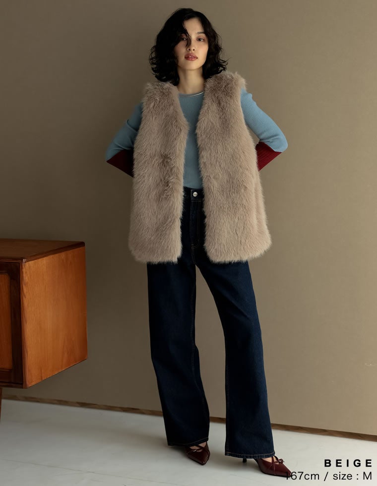 ミドルフェイクファーベスト