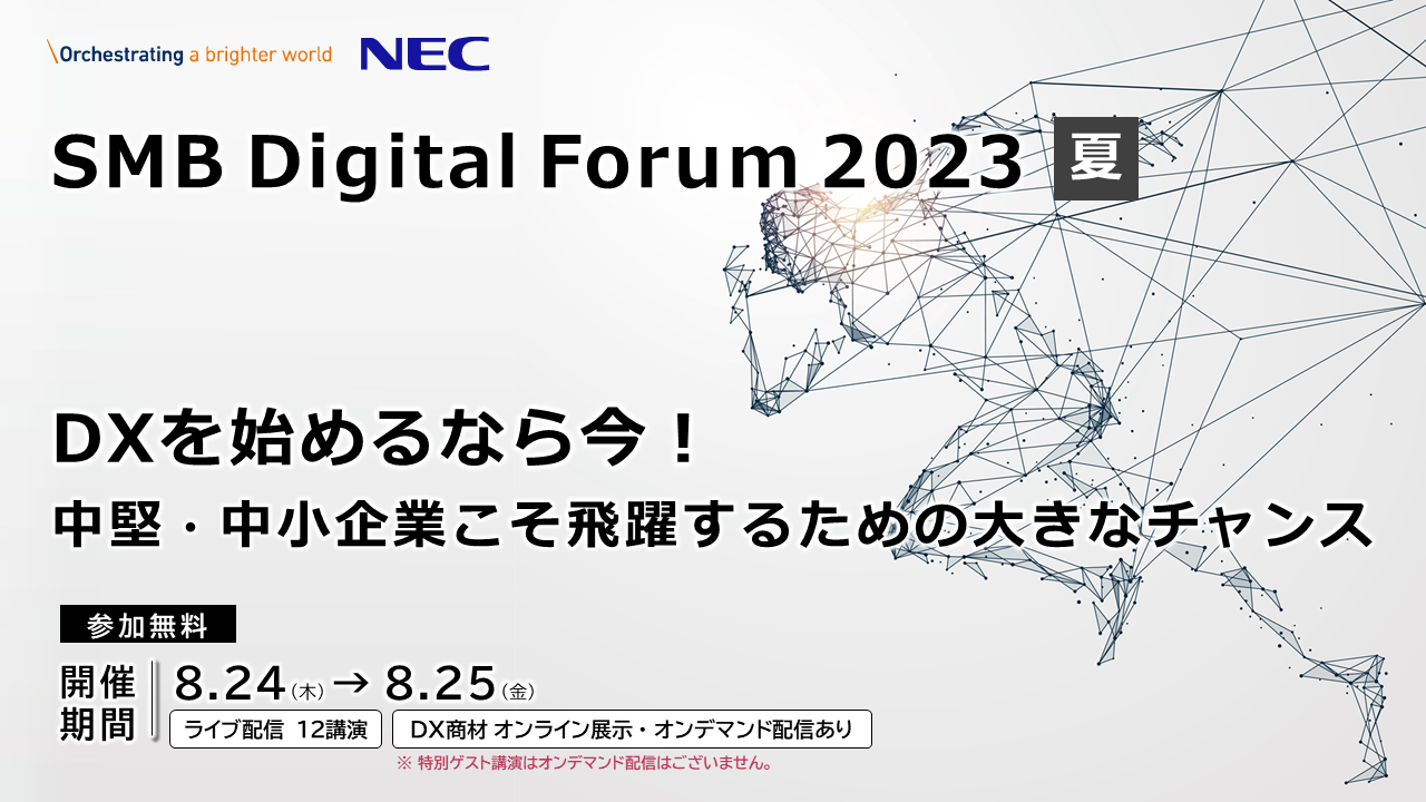 NEC、中堅・中小企業向けDXイベント『SMB Digital Forum 2023 夏』開催決定!(8/24・8/25 Web開催)