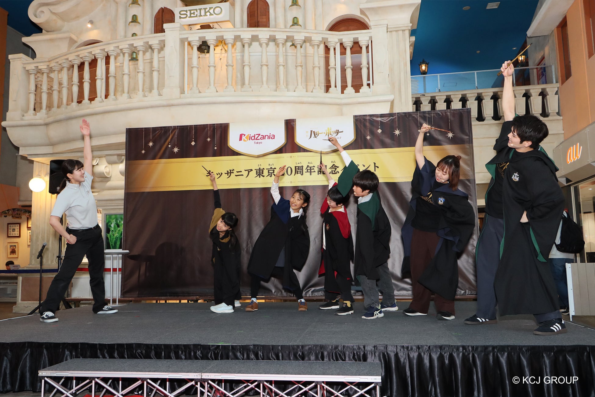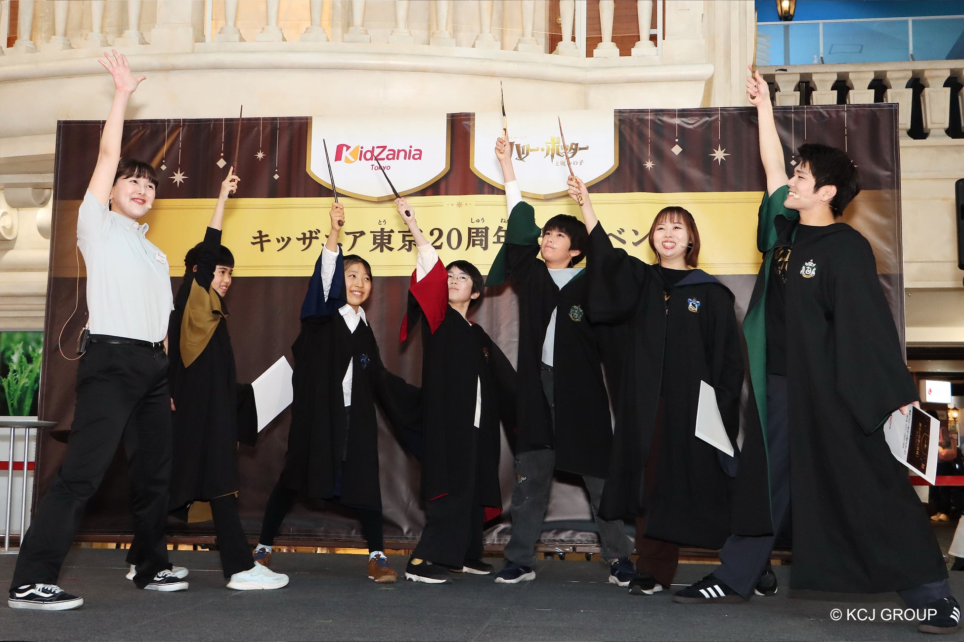 こどもの職業・社会体験施設「キッザニア」を企画・運営するKCJ GROUP 株式会社(本社:東京都中央区、代表取締役社長:圓谷 道成、以下 KCJ GROUP)は、2026年10月5日(月)に日本上陸20周年を迎える「キッザニア」のアニバーサリー企画として、舞台『ハリー・ポッターと呪いの子』とのコラボレーションによる期間限定「舞台の仕事に挑戦!~“魔法使い”を演じよう~」を、2026年6月1日(月)から8月31日(月)までの約3ヶ月間、キッザニア東京にて実施いたします。