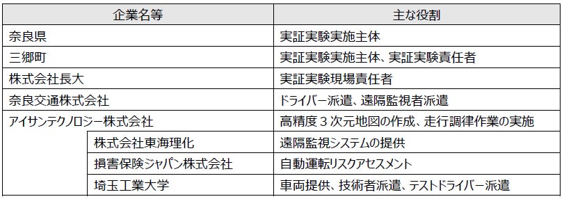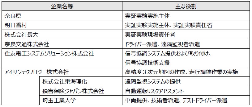 株式会社長大(本社:東京都中央区、代表取締役社長 野本昌弘)、奈良交通株式会社(本社:奈良県奈良市、代表取締役社長:田中耕造)、住友電工システムソリューション株式会社(本社:東京都文京区、代表取締役社長:鷲見公一)、アイサンテクノロジー株式会社(本社:愛知県名古屋市中区、代表取締役社長:加藤 淳)、株式会社東海理化(本社:愛知県丹羽郡大口町、代表取締役社長:二之夕 裕美)、損害保険ジャパン株式会社(本社:東京都新宿区、代表取締役社長:白川 儀一)、埼玉工業大学(本部:埼玉県深谷市、学長:内山俊一)は、自動運転など新たな公共交通の利用促進策等の導入を想定し、それらを実装する上での技術面・運用面の具体的な課題や、公共交通の維持・向上に向けた検討材料を抽出するため、奈良県高市郡明日香村(以下「明日香村」)および同県生駒郡三郷町(以下「三郷町」)で実施される次世代のデジタル技術を活用した交通サービス(以下「デジタル交通サービス」という。)に関する実証実験に参加をいたします。