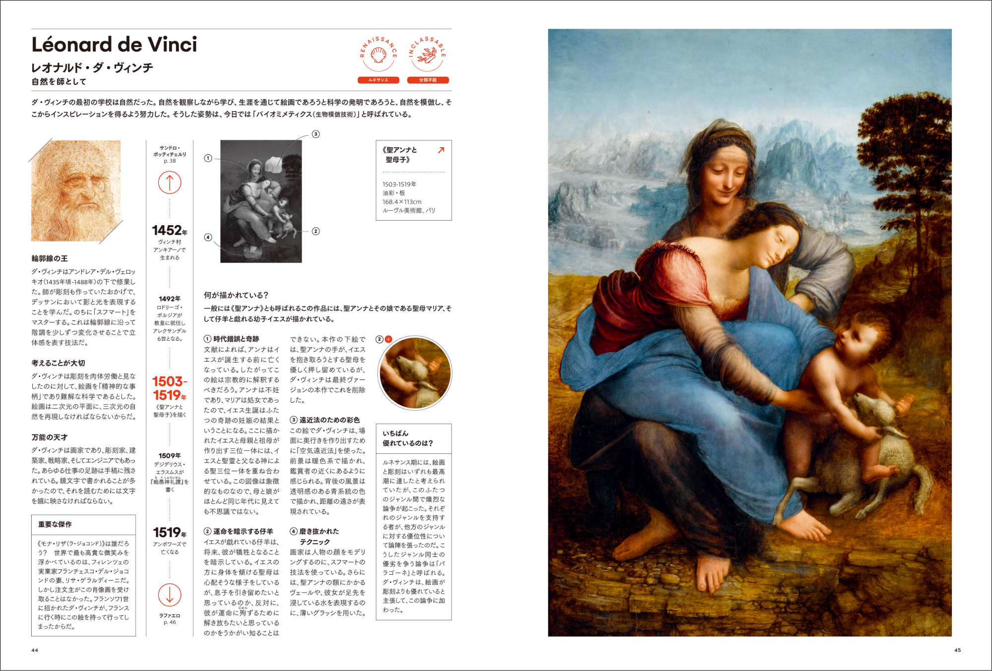 ◆アーティストを個々に紹介:2ページにわたり、著名なアーティストの年表に合わせ、どのような人物か絵画と共に確認することができます。