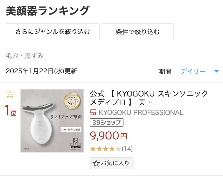 この度、楽天市場の美顔器部門で1位を獲得いたしましたので、この場をお借りしてご報告させていただきます。