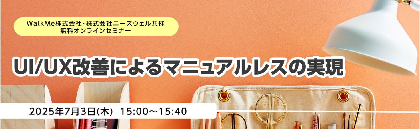 株式会社ニーズウェル(本社:東京都千代田区、代表取締役会長兼社長 船津浩三)は、2025年7月3日(木)15時より、WalkMe株式会社・当社共催の無料オンラインセミナー「UI/UX改善によるマニュアルレスの実現」を開催します。