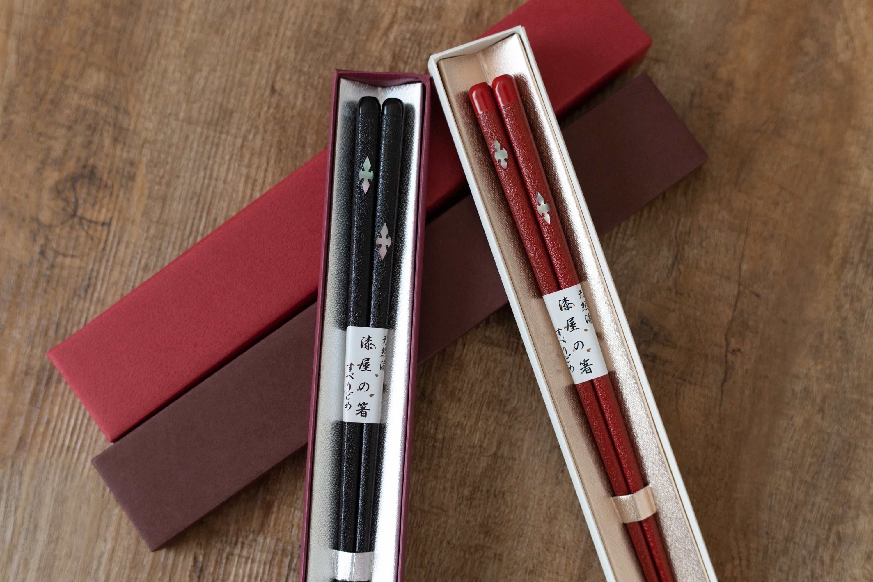またお土産として、桧葉のお箸に地元尼崎の企業である賀名生漆工芸で製造された漆を塗って作られた天然素材の漆塗箸をご用意しております。