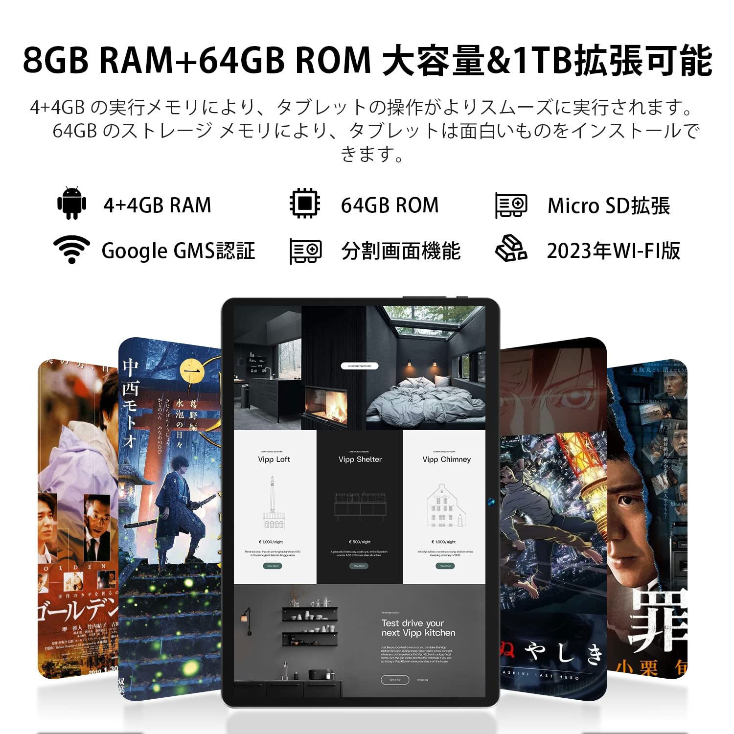 【高性能4コアCPU、8GB(4GB+4GB拡張)+64GB+1TB拡張 タブレット 10インチ PC】I9Plus Android12タブレットRK3566を搭載しています。4コアCPUは、高性能な「4*A55」搭載し、安定性が高くスムーズな処理を実現し操作がサクサクスピーディーに行えます。
