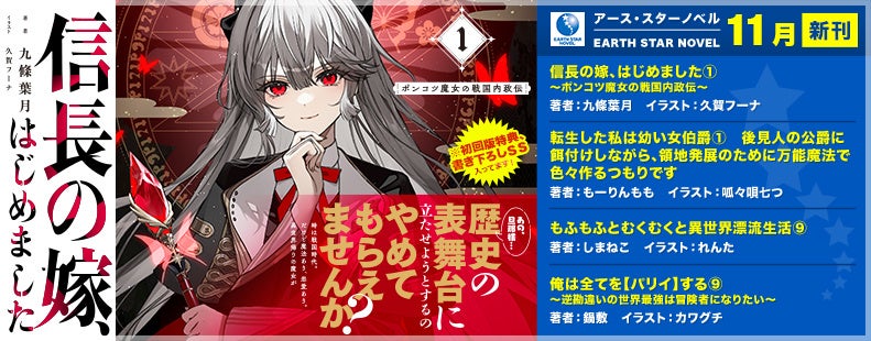 株式会社アース・スター エンターテイメント(東京都品川区)は【アース・スター ノベル】新刊を11月15日(金)より発売いたします。公式サイト(https://www.es-novel.jp) では新作や一部既刊を無料でお試し読みいただけます。