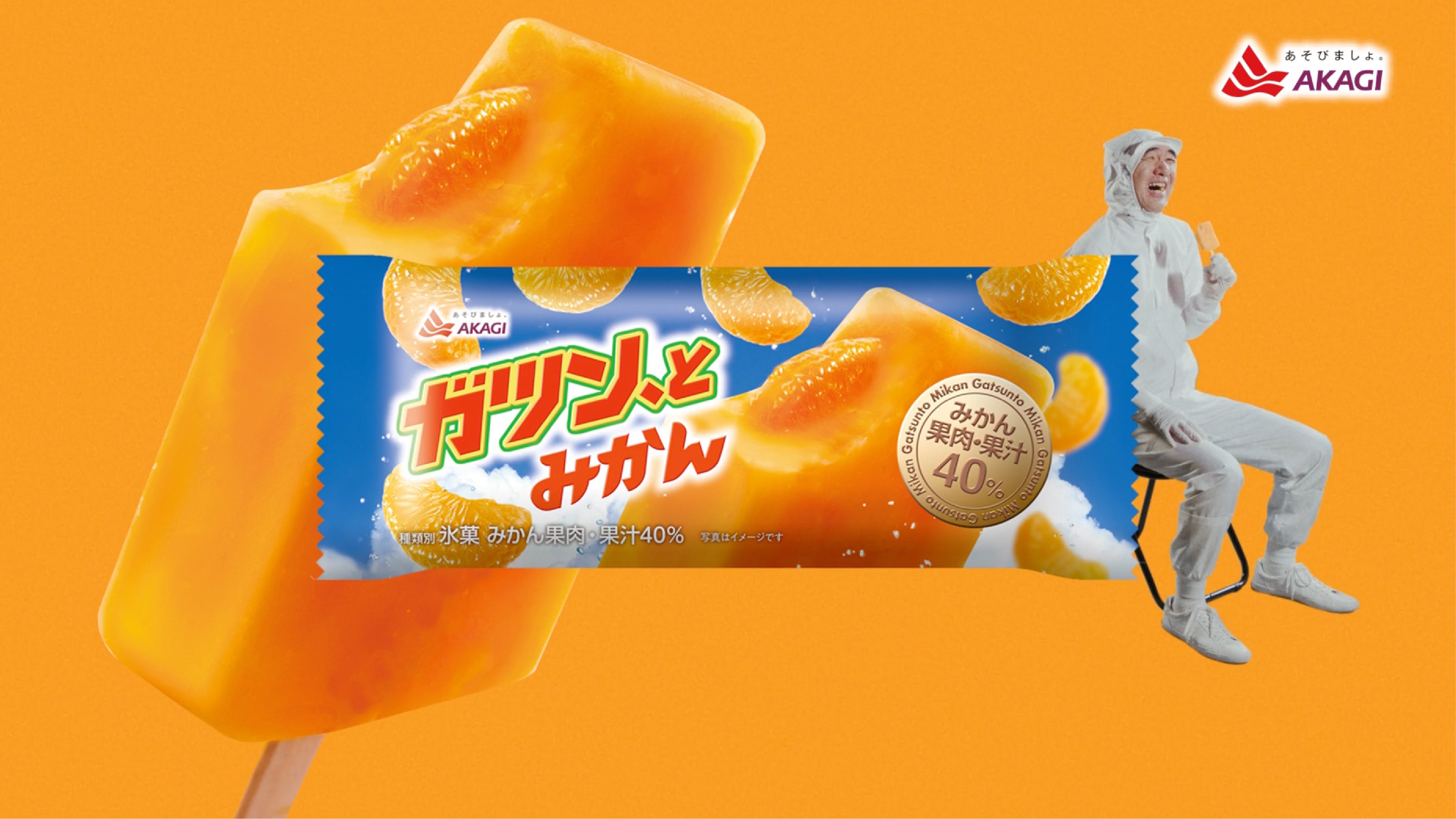 「ガツン、とみかん」は、みかんアイスキャンディーにみかん果肉をガツン、と入れることで、みかんの果肉感と果汁感を存分に楽しむことができる、”瞬間気分爽快っ!”なアイスキャンディーです。