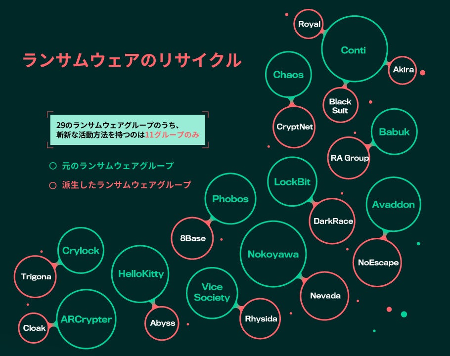 「グループの名称が変更されたりメンバーが新規グループに移籍しても、ある程度は同じリソースや手法を再利用しているケースが多いのです。実際、今年私たちが目にした新しい攻撃グループの多くは、既知のランサムウェア攻撃キャンペーンにルーツを持つと考えるべきものが多く見受けられます。例えば、『Akira』をはじめとする複数のグループは、今はなき『Conti』と多くの共通点を持ち、『Conti』の元アフィリエイトが立ち上げたグループである可能性が高いです。」
