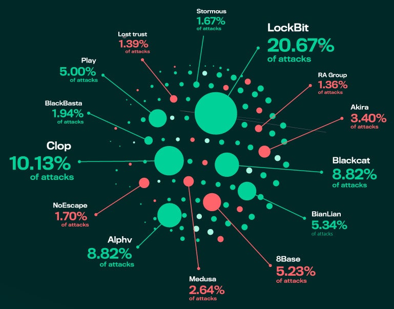 (ランサムウェアグループによる攻撃のパーセンテージ)