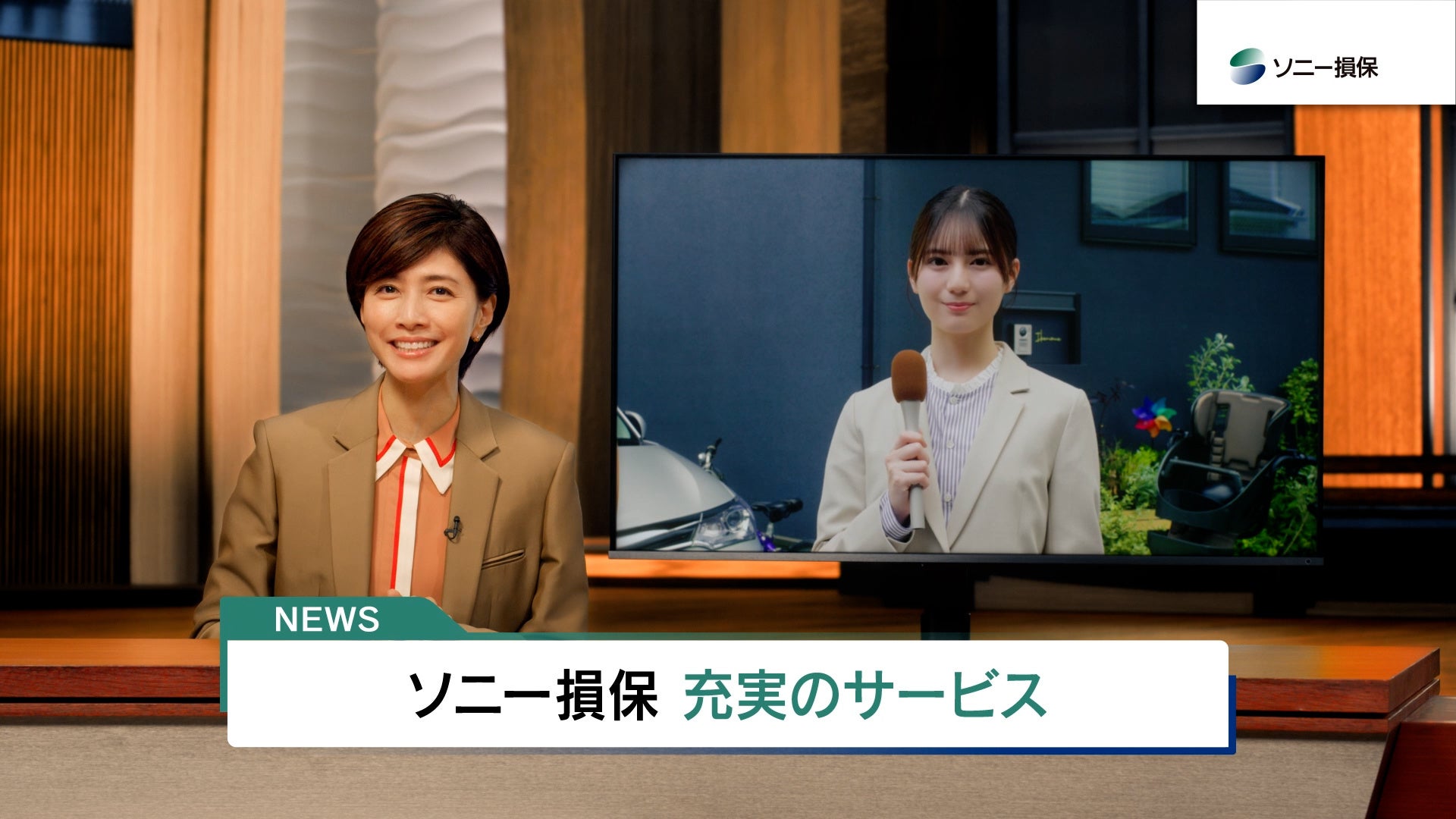 【ソニー損保】阿部寛さんが事故現場の救世主に、内田有紀さんがニュースキャスター、小坂菜緒さん(日向坂46)がリポーターとして登場する自動車保険の新CMを放映開始