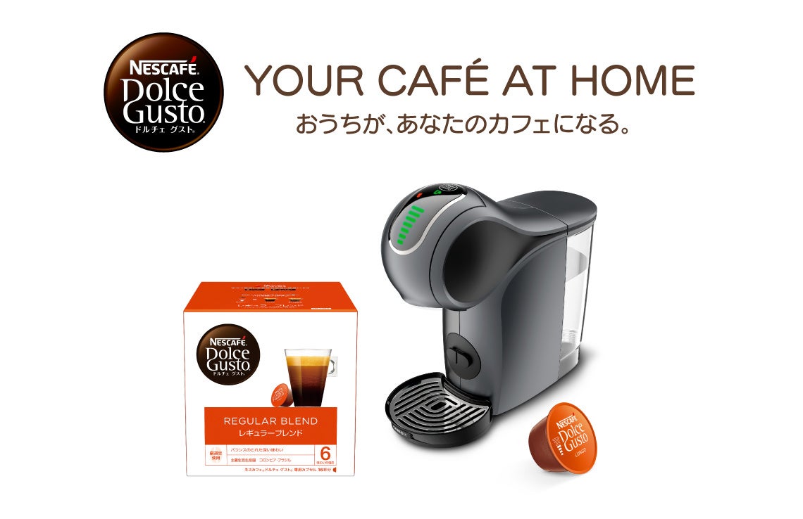 「ネスカフェ ドルチェ グスト」は、自宅で手軽にカフェクオリティのレギュラーコーヒーや抹茶、ミルクティー、ココアなど、30種類を超える豊富なバラエティメニューや「ネスカフェ ドルチェ グスト」向けに独自に開発されたスターバックス ブランドのカプセルが1杯ずつ楽しめる、カプセル式のコーヒーメーカーです。1杯ずつ本格的なカフェメニューが楽しめる「ネスカフェ ドルチェ グスト」は、“おうちが、あなたのカフェになる。”ソリューションとして、多くのお客様に支持されています。