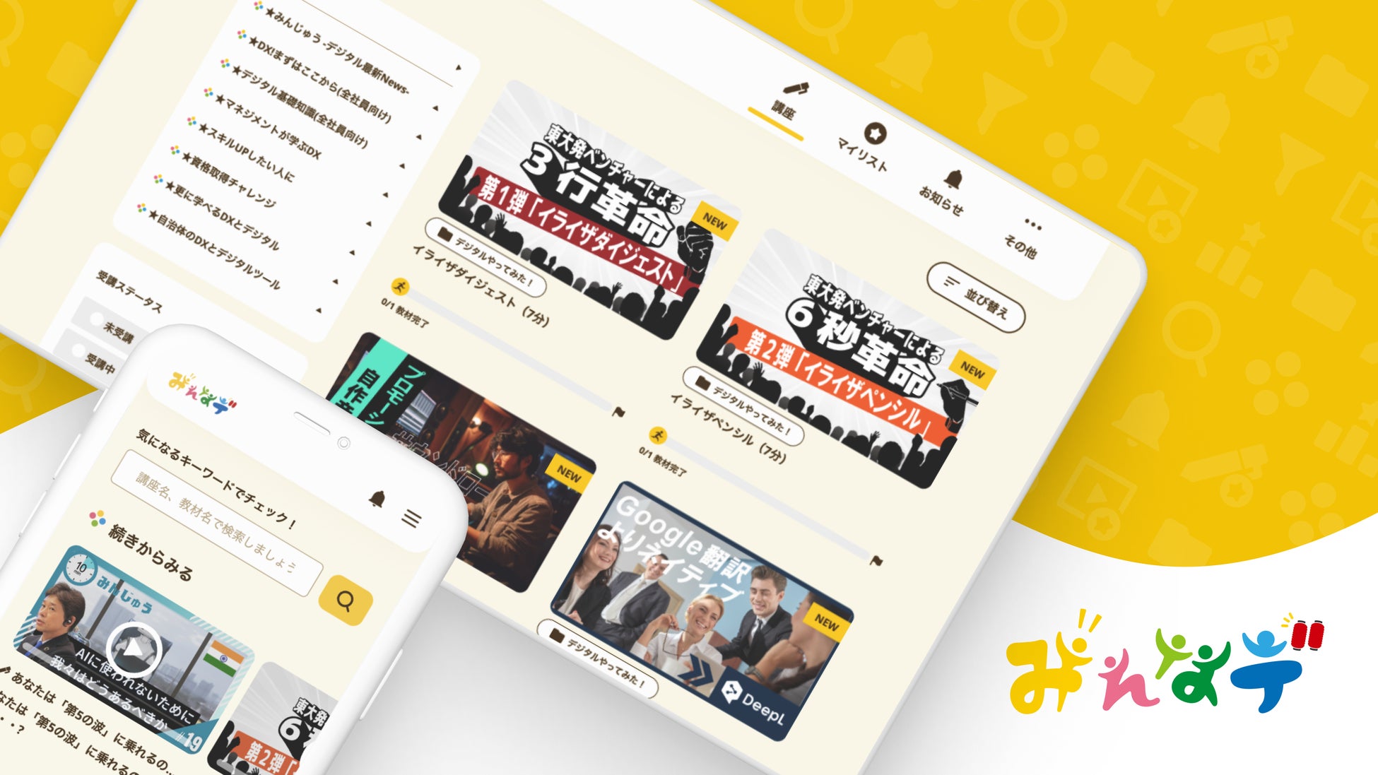 フラー株式会社(本社:新潟県新潟市、代表取締役:渋谷 修太・山﨑 将司、以下「フラー」)は、デジタルトランスフォーメーション(DX)人材育成プログラムを提供する株式会社ディジタルグロースアカデミア(以下「ディジタルグロースアカデミア」)が提供するデジタル人材育成に特化した学びのプラットフォーム「みんなデ」のリニューアルを、プロフェッショナル領域であるデジタルプロダクトデザインの知見を生かし、支援しましたのでお知らせいたします。