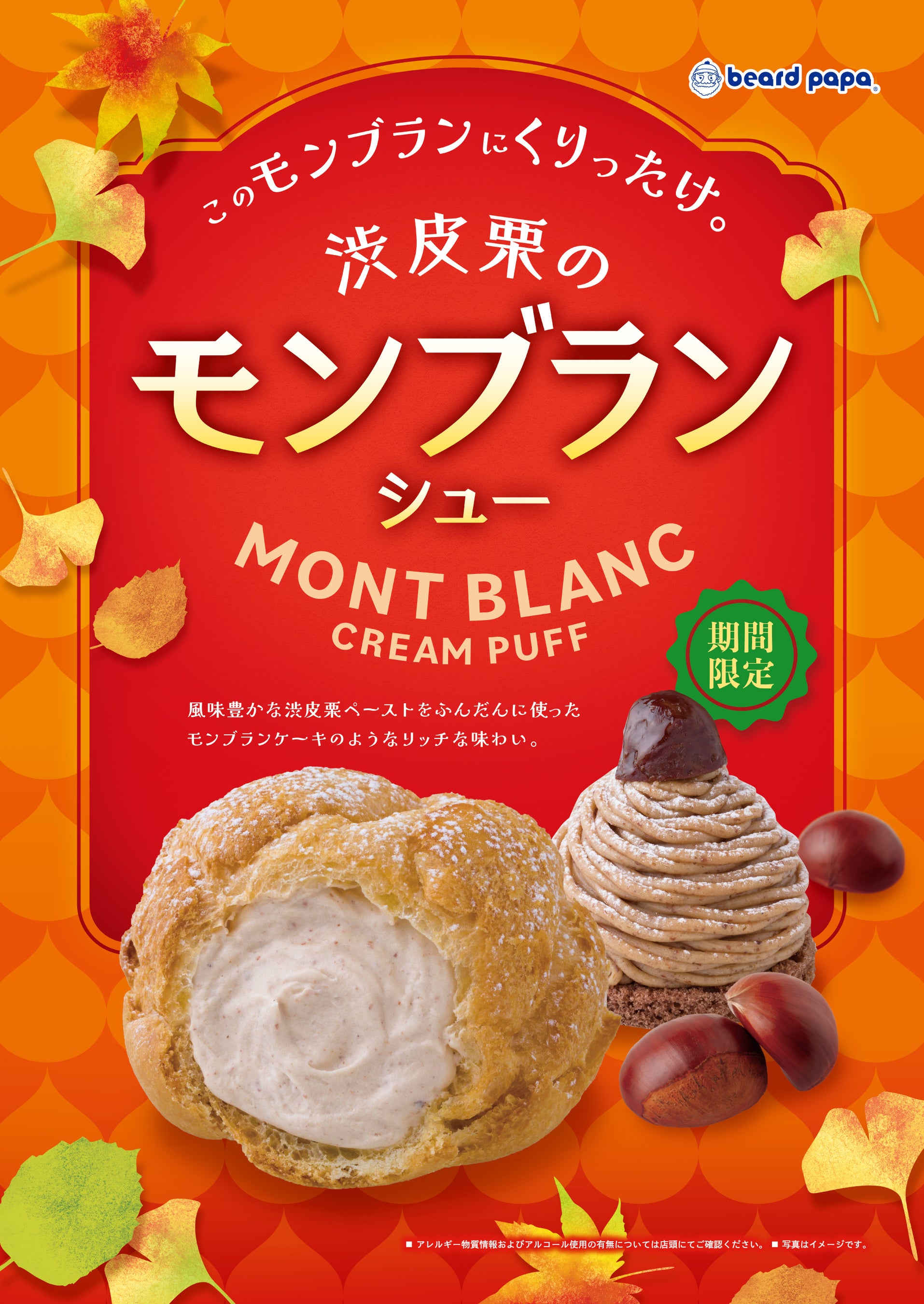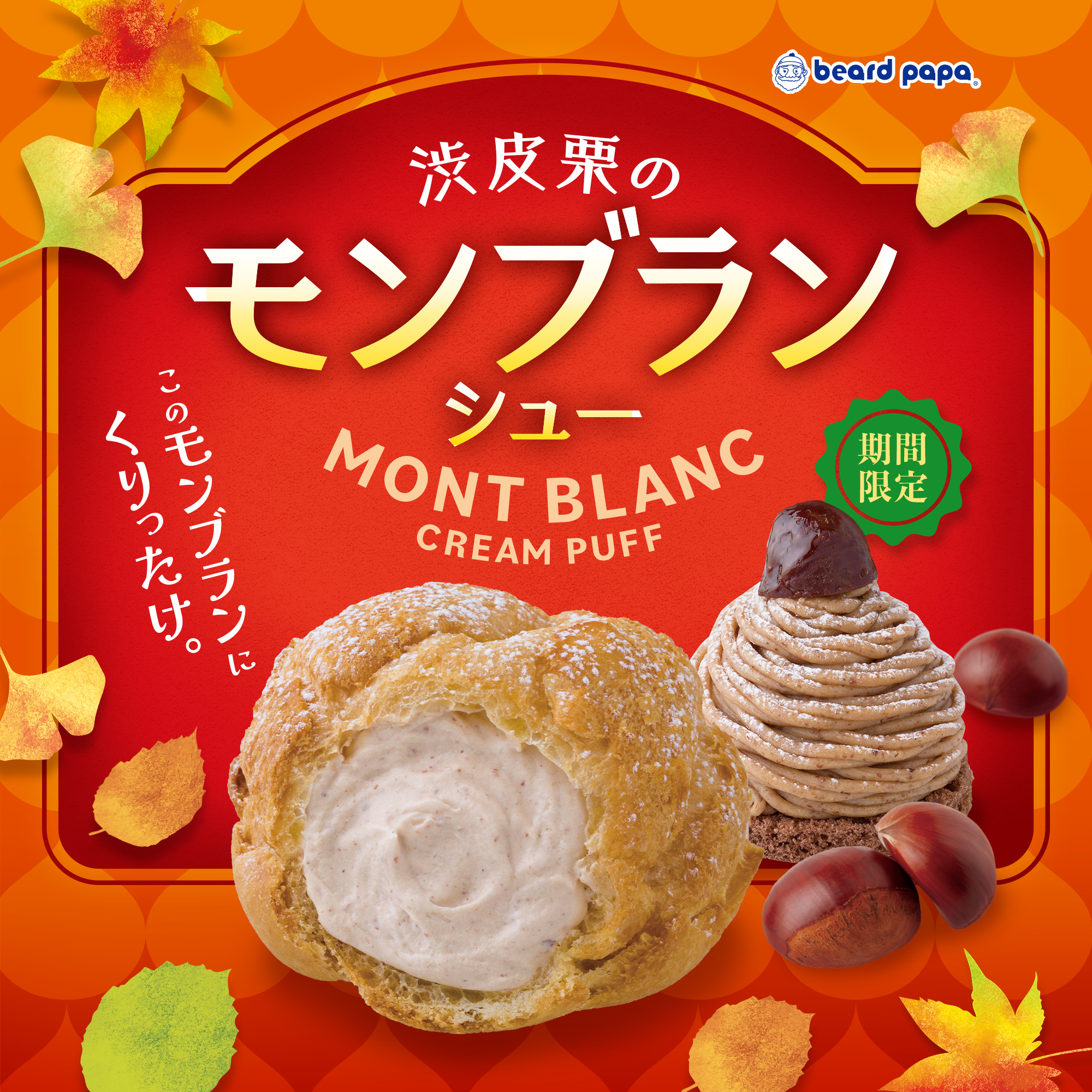 この秋、ビアードパパがお届けするモンブラン好きも納得の味わいに、あなたも「くりったけ(首ったけ)」になること間違いなし。