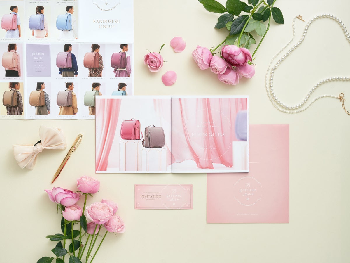 今期のカタログテーマは「Open My grirose !」。griroseの世界とのときめく出会いを「箱を開く」ワクワク感に重ねて伝えていくストーリーです。カタログ以外にも、ランドセルをドレスアップするカバーやリボンの着せ替えシールなど、自宅でもランドセル選びが楽しめるアイテムや、早期購入いただいた方に先着でgriroseオリジナルの香りがするフレグランスカードも一緒にお届けします。