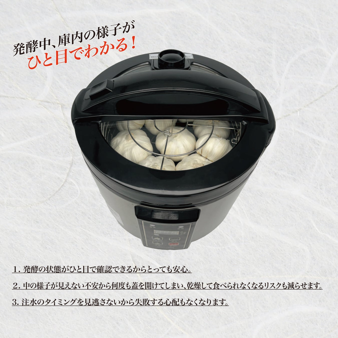 自然の健康食を自宅で手軽に作れる「ROOMMATE® 窓付き黒にんにく発酵器(家庭用)」を発売しました