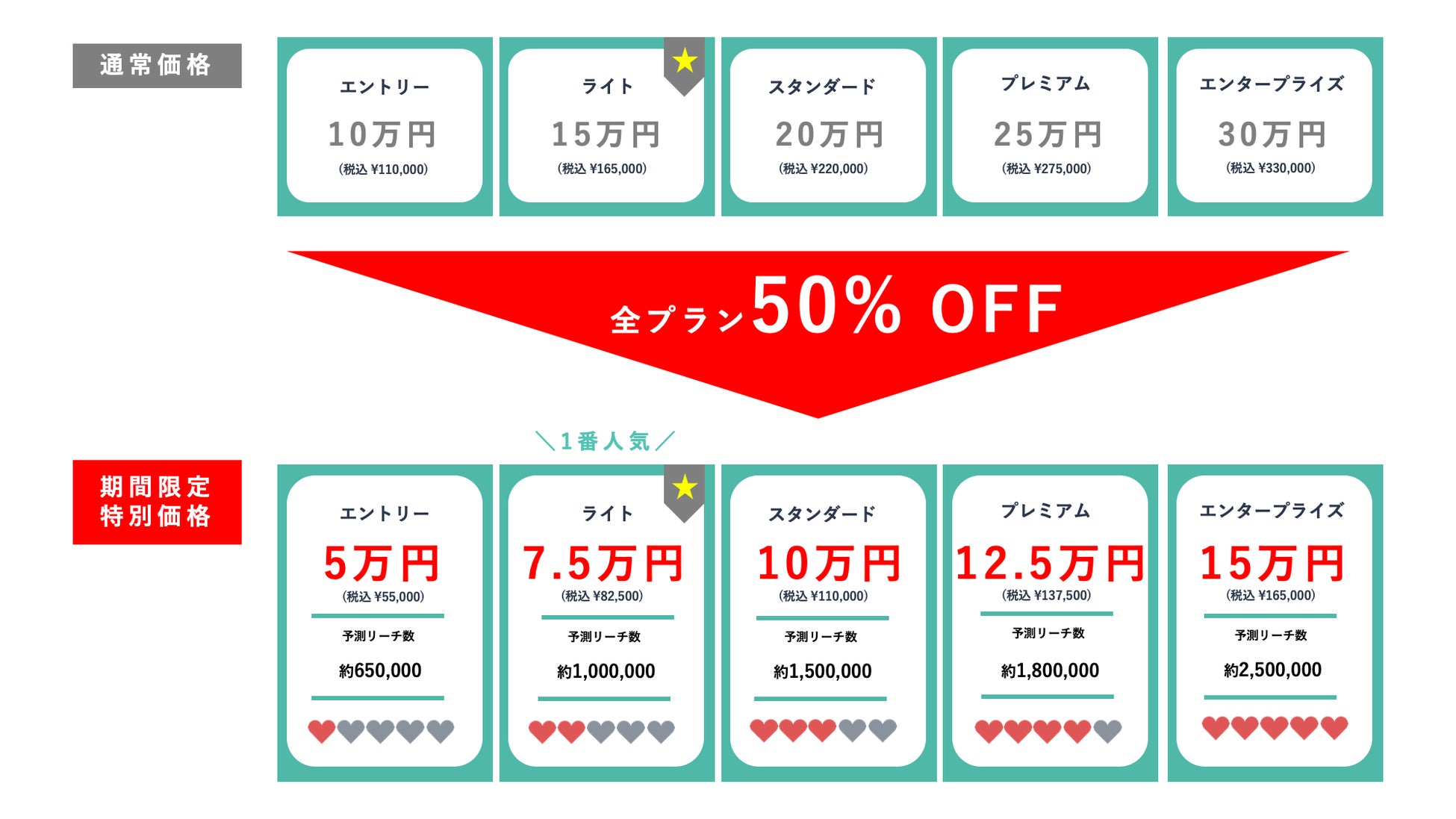 - 1配信で平均 “100万リーチ” SNSキャンペーンのお供に最適